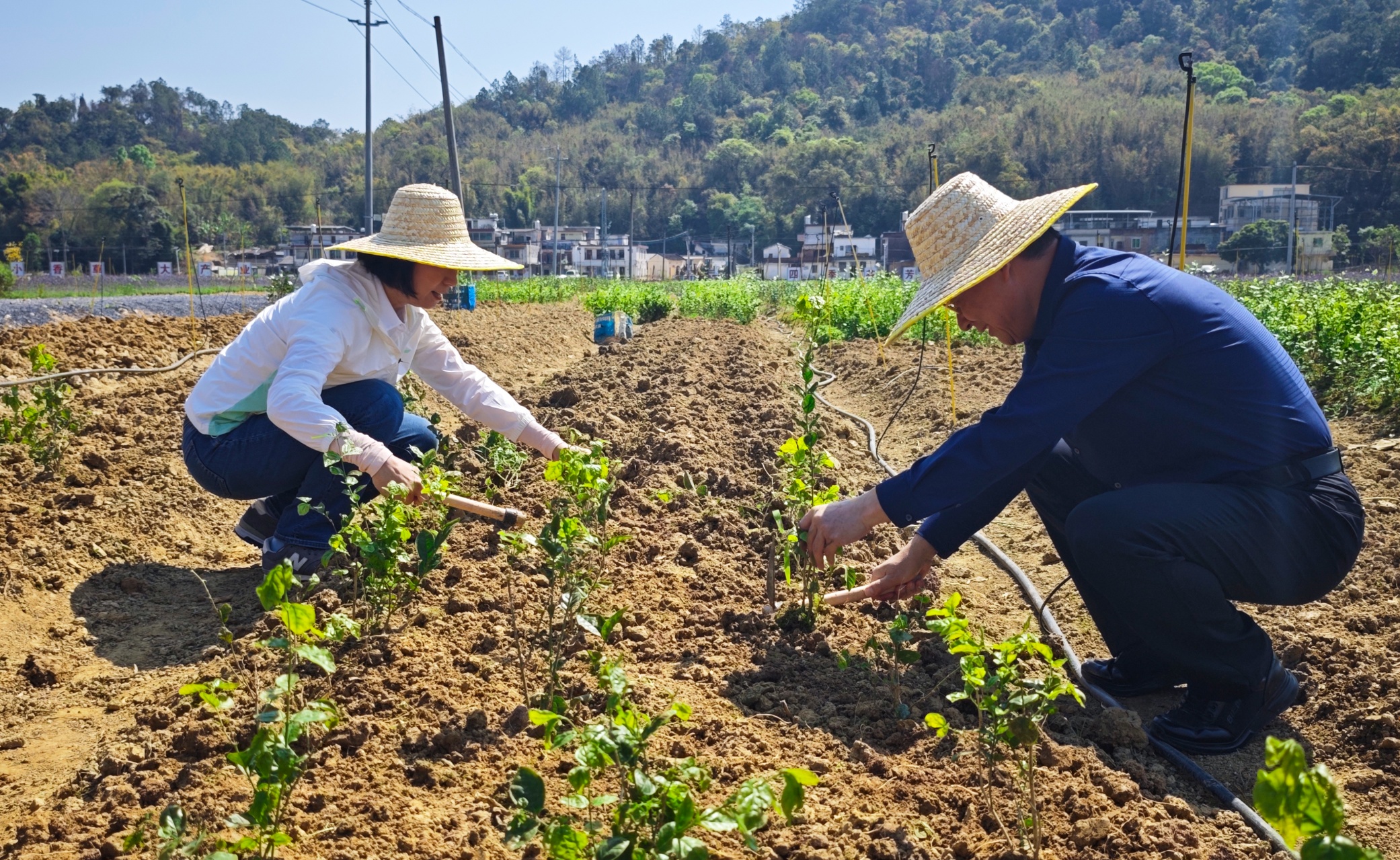 田间助农促产业。在北社村芳香产业基地,党员干部们躬身劳作,移栽茉莉花等特色芳香作物,沉浸式体验农耕劳作,以实际行动助力产业春耕,夯实特色产业发展根基。